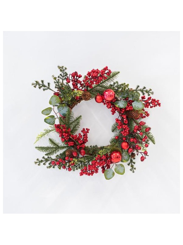 Στεφανι, με Κοκκινα Berry και Κοκκινα Διακοσμητικα, 50cm