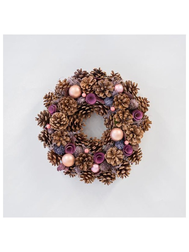 Στεφανι, με Κουκουναρες και ροζ Διακοσμητικα, 34cm