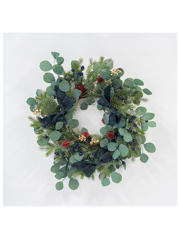 Στεφανι, με Μπλε Berry και Πρασινους Φιογκους, 60cm