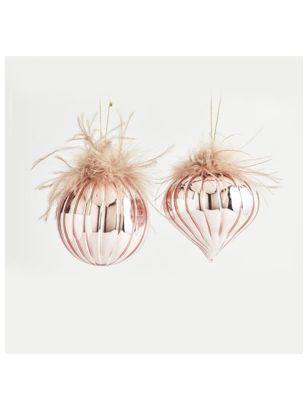 Στολιδι Γυαλινο, ροζ με Φτερα, 2 Σχηματα, σετ 4τμχ, 10cm