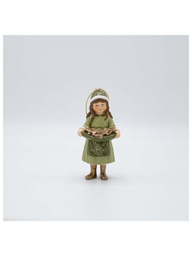 Στολιδι Πολυρεζιν, Κοριτσακι, Πρασινο με Καλαθι με Φρουτα, 5.5x12cm
