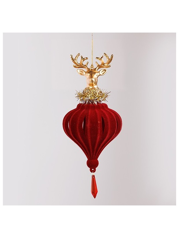 Στολιδι, Βελουδινο, Κοκκινο με Χρυσο Ταρανδο, 19.56cm