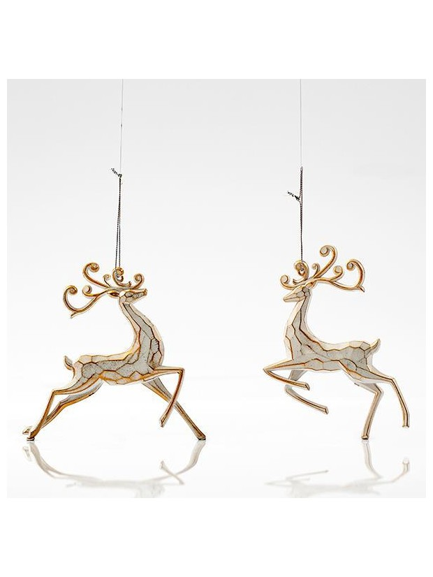 Ταρανδος Ακρυλικος, Λευκος με Χρυσο, 2 Σχεδια, 14,5x14cm