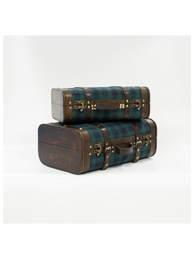 Υφασματινη Βαλιτσα, Πρασινο-Μπλε Καρο, σετ 2 Τμχ, 42x28,3x17,5cm και 36x22,5x13,2cm