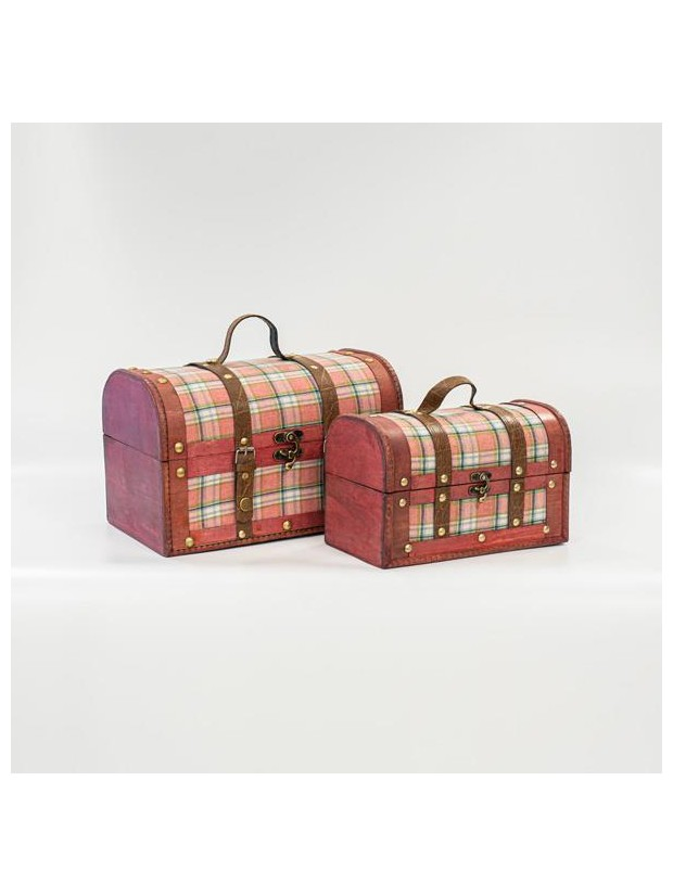 Υφασματινη Βαλιτσα, ροζ Καρο, σετ 2 Τμχ, 30x18x19cm και 24x13x15,3cm