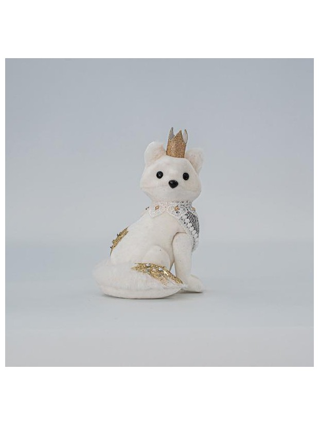 Βελουδινη Αλεπου, Λευκη, με Χρυσο Γκλιτερ, 14x13x7cm