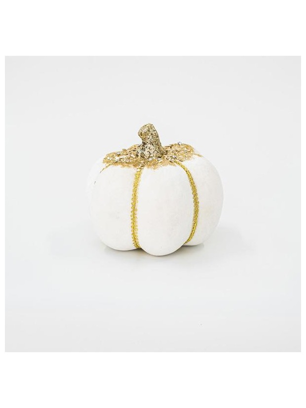 Βελουδινη Κολοκυθα, Λευκη, με Χρυσο Γκλιτερ, 15cm