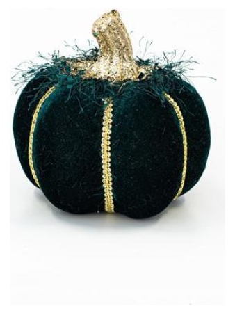 Βελουδινη Κολοκυθα, Σκουρο Πρασινο, με Χρυσο Γκλιτερ, 15cm