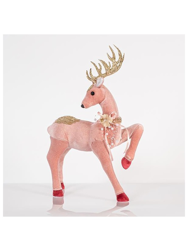 Βελουδινο Ελαφι, Ροζ, με Χρυσο Glitter, 33x47cm
