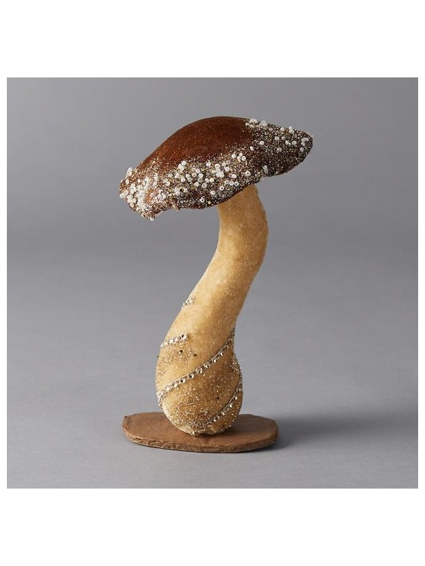 Βελουδινο Μανιταρι, Καφε, με Γκλιτερ, 14x14x22cm