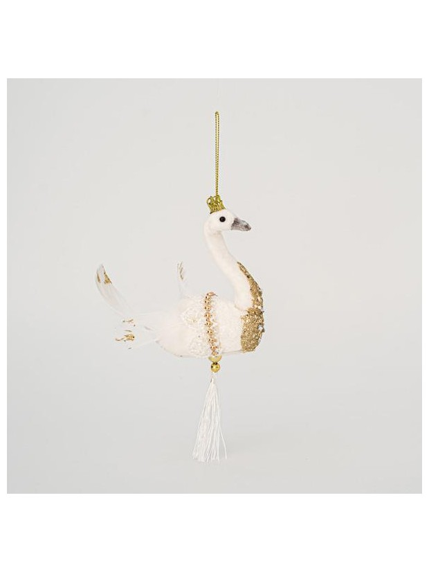 Βελουδινος Κρεμαστος Κυκνος, Λευκος, με Χρυσο Γκλιτερ, 13x22cm