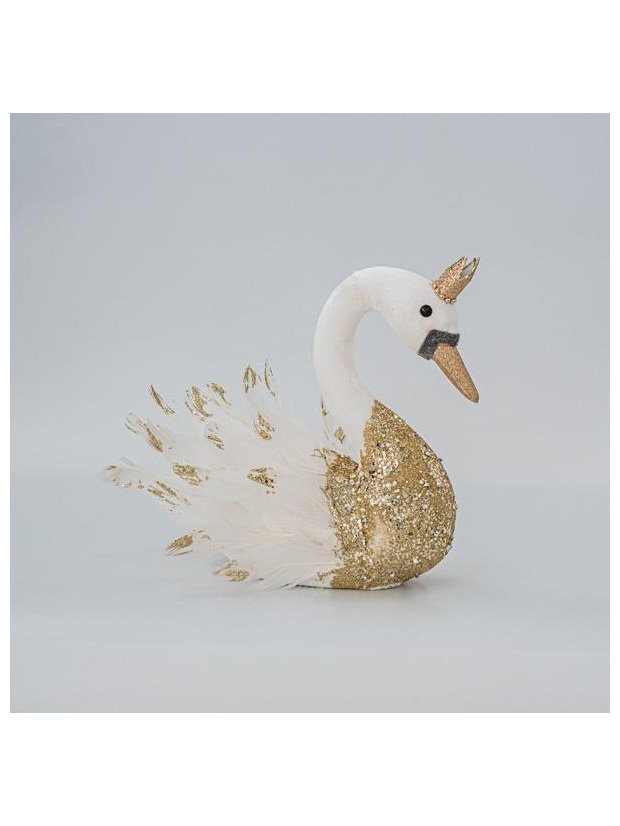 Βελουδινος Κυκνος, Λευκος, με Χρυσο Γκλιτερ, 27x22x28cm