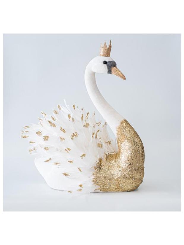 Βελουδινος Κυκνος, Λευκος, με Χρυσο Γκλιτερ, 50cm