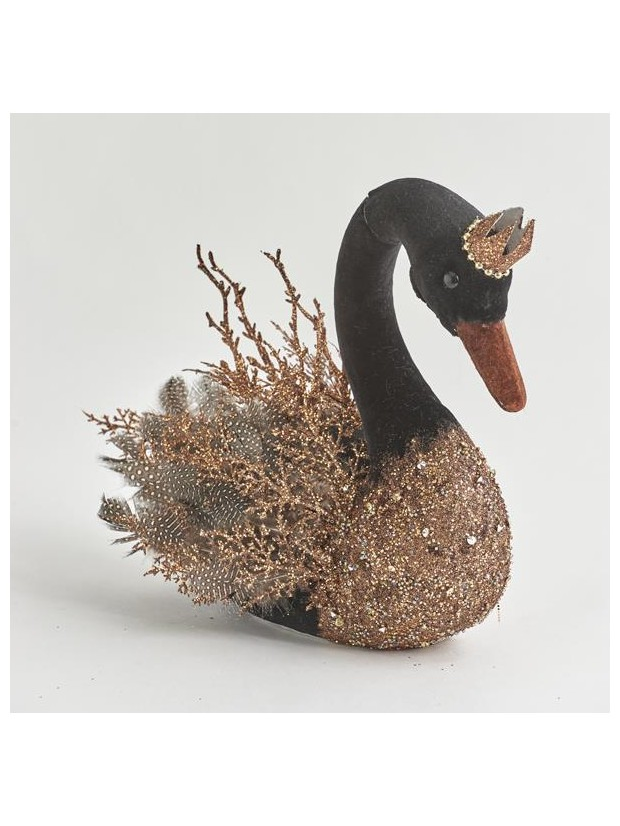 Βελουδινος Κυκνος, Μαυρος, με Χαλκινο Γκλιτερ, 28cm
