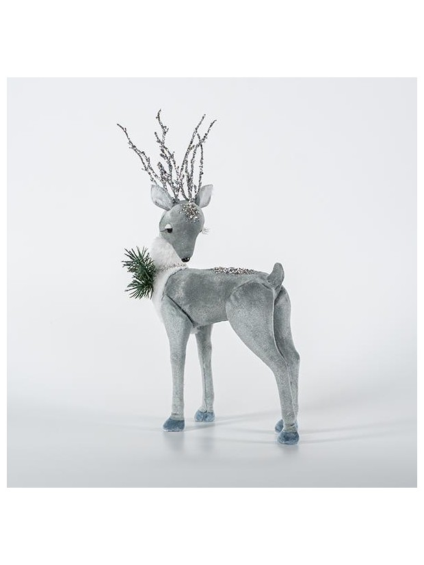 Βελουδινος Ταρανδος, Γκρι, με Glitter, 19x39cm