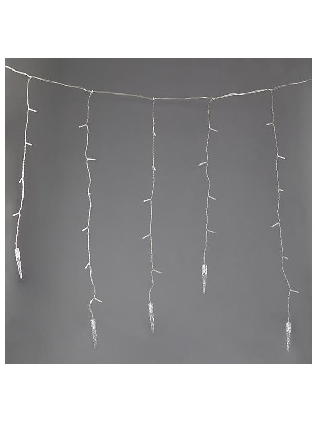 Βροχη, 96 led με 16 Σταλακτιτες 9,5cm, 31v Μετασχηματιστης, με Προγραμμα, Επεκταση εωσ 3, Διαφανο Καλωδιο, Λευκο Led, 80x300cm (6/7/5), Προεκταση Παροχης 300cm, Ip44