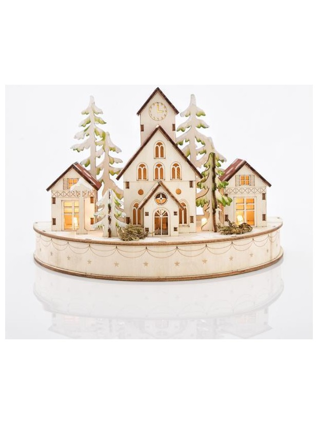 Χωριο Ξυλινο, με 6 Θερμα Λευκα Led, Μπαταριας, 25x12,5x16,5cm