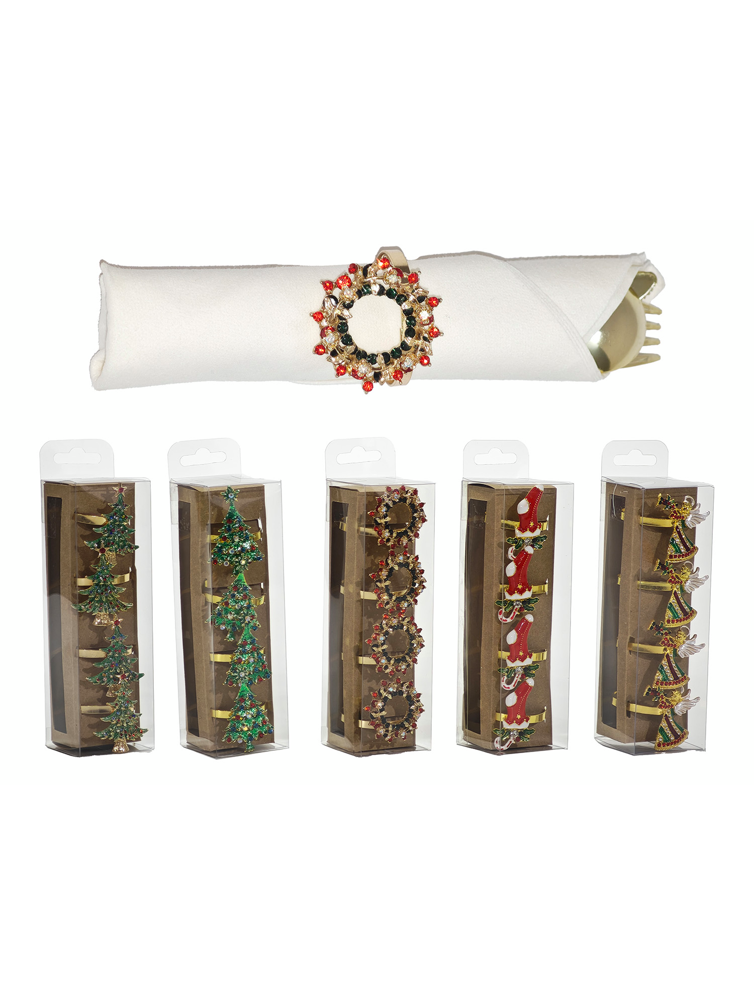 Χριστουγεννιάτικα δαχτυλίδια σετ 4 τμχ σε 5 σχέδια