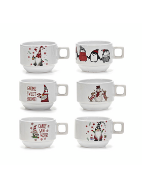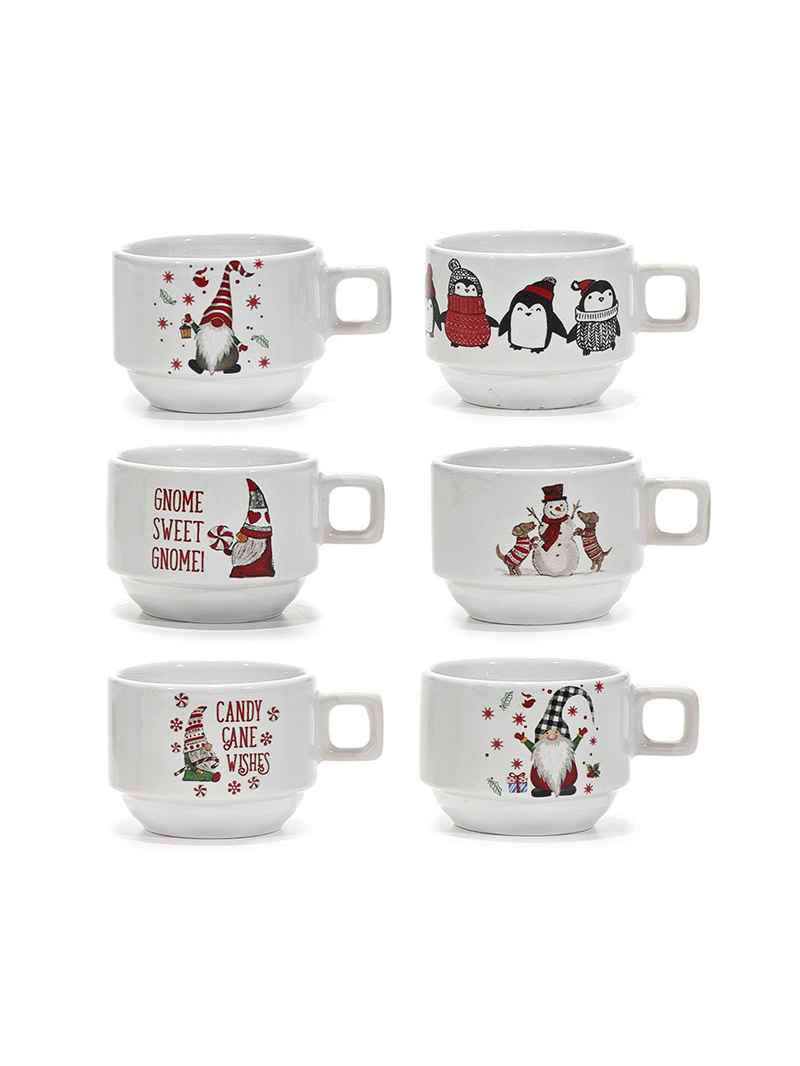 Χριστουγεννιάτικα φλυτζάνια καφέ σετ 6τμχ με μεταλλική στήλη σε λευκό χρώμα με σχέδια 120ml