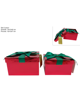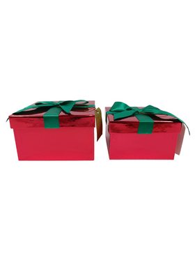 Χριστουγεννιάτικα κουτιά δώρου χάρτινα σετ 2τμχ σε κόκκινο χρώμα με πράσινο φιόγκο 14x14x8cm & 12x12x7cm