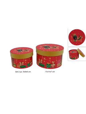 Χριστουγεννιάτικα κουτιά στρόγγυλα σε κόκκινο χρώμα σετ 2τμχ