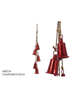 Χριστουγεννιάτικα κρεμαστά καμπανάκια σε κόκκινο χρώμα 60cm