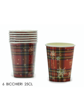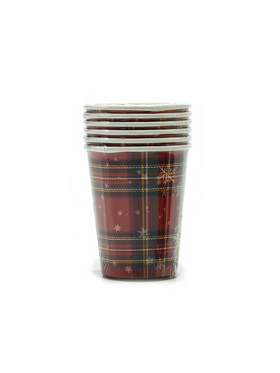 Χριστουγεννιάτικα χάρτινα ποτήρια καρό με χιονονιφάδες σετ 6τμχ 250ml