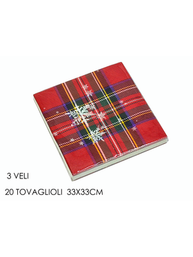 Χριστουγεννιάτικες καρό χαρτοπετσέτες 3φυλλες σε κόκκινο χρώμα σετ 20τμχ 33cm