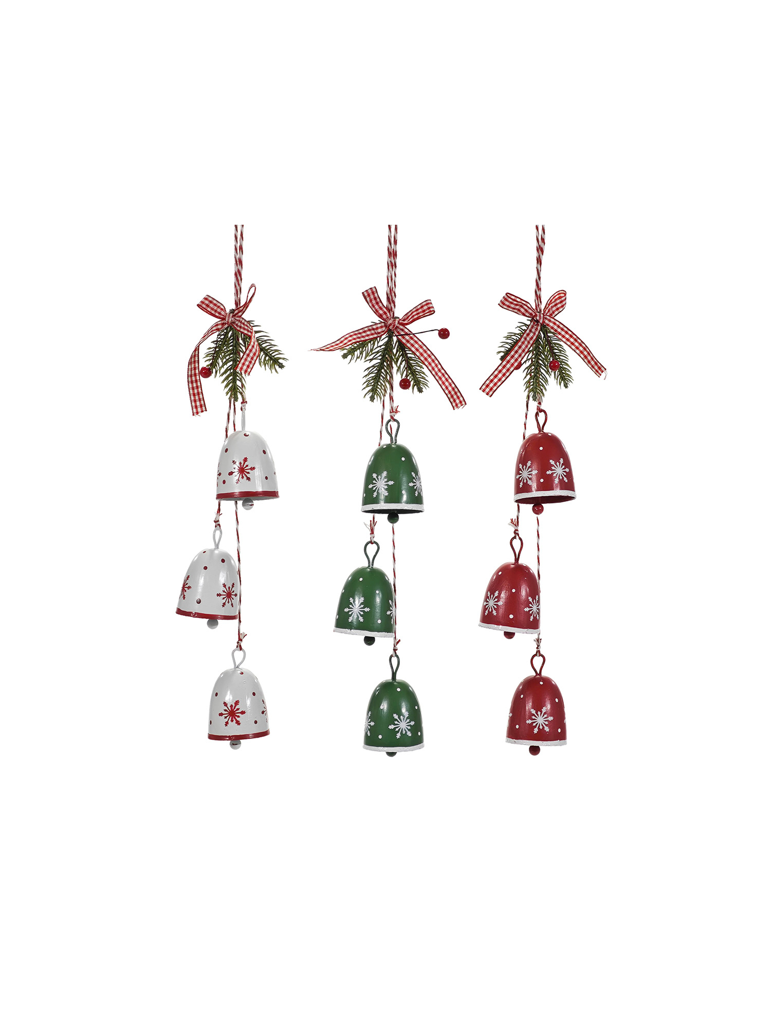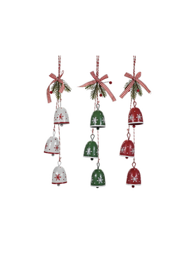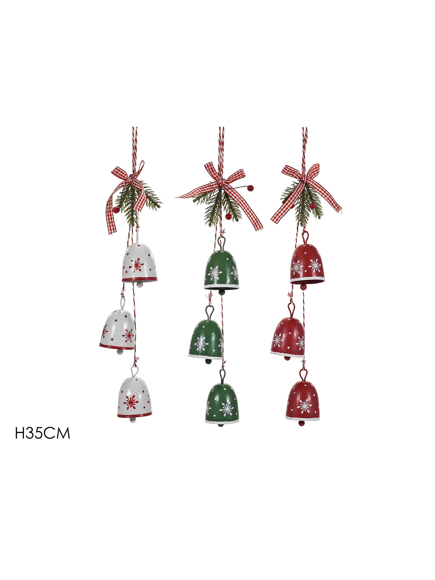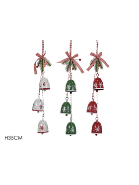 Χριστουγεννιάτικες κρεμαστές μεταλικές καμπάνες με ύψος 35cm σε 3 χρώματα