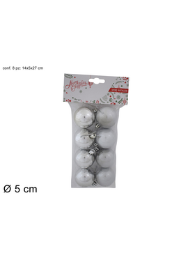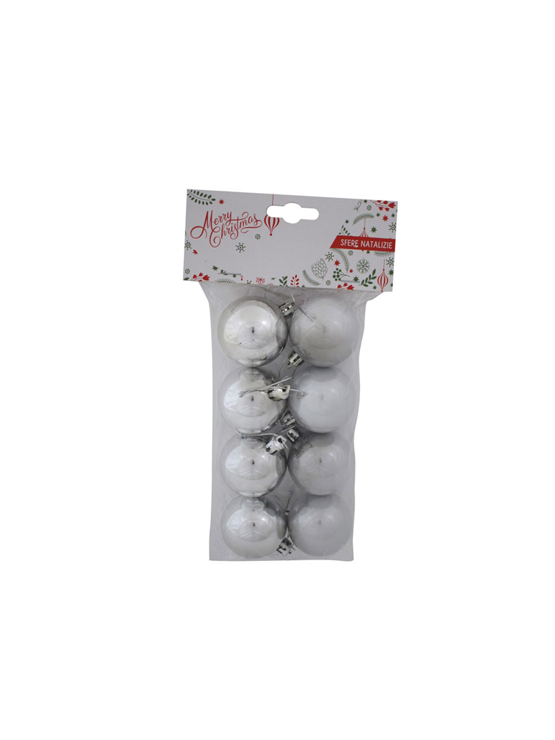 Χριστουγεννιάτικες μπάλες σετ 8 τμχ με διάμετρο 5cm σε γυαλιστερό ασημί χρώμα