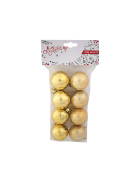 Χριστουγεννιάτικες μπάλες σετ 8 τμχ με διάμετρο 5cm σε γυαλιστερό χρυσό χρώμα