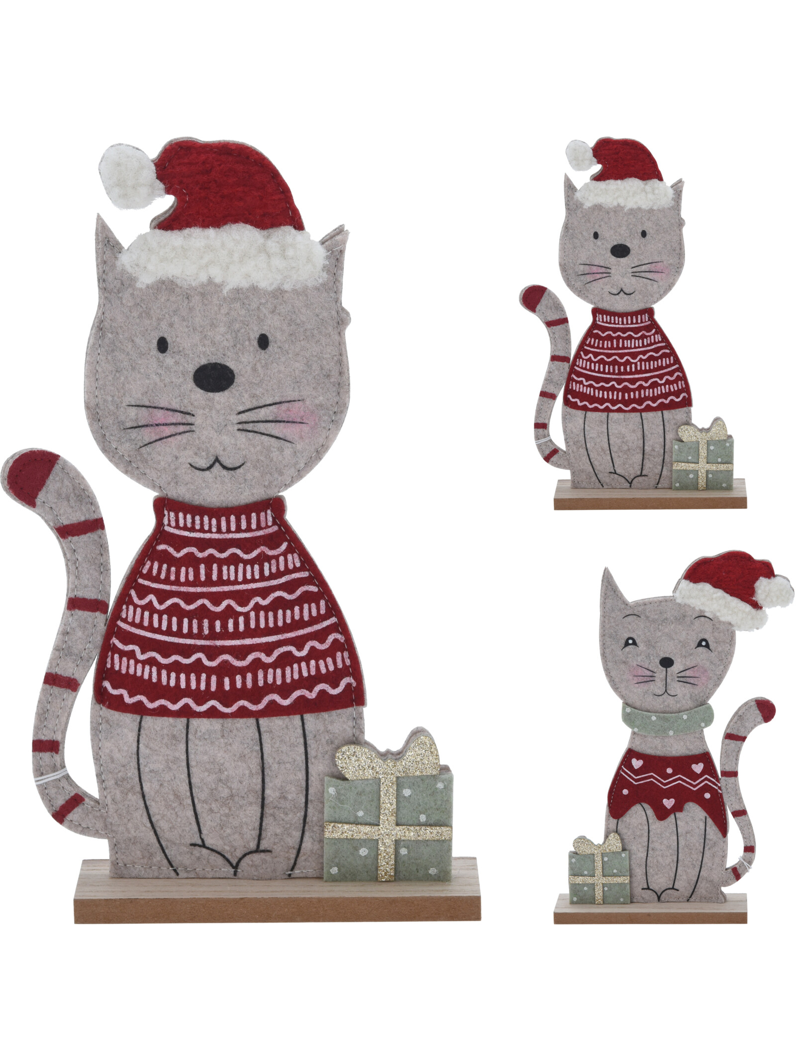 Χριστουγεννιάτικη διακοσμητική γατούλα με σκουφάκι με ύψος 27cm