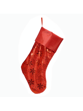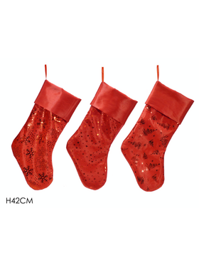 Χριστουγεννιάτικη διακοσμητική κάλτσα με σχέδια σε κόκκινο χρώμα 45cm