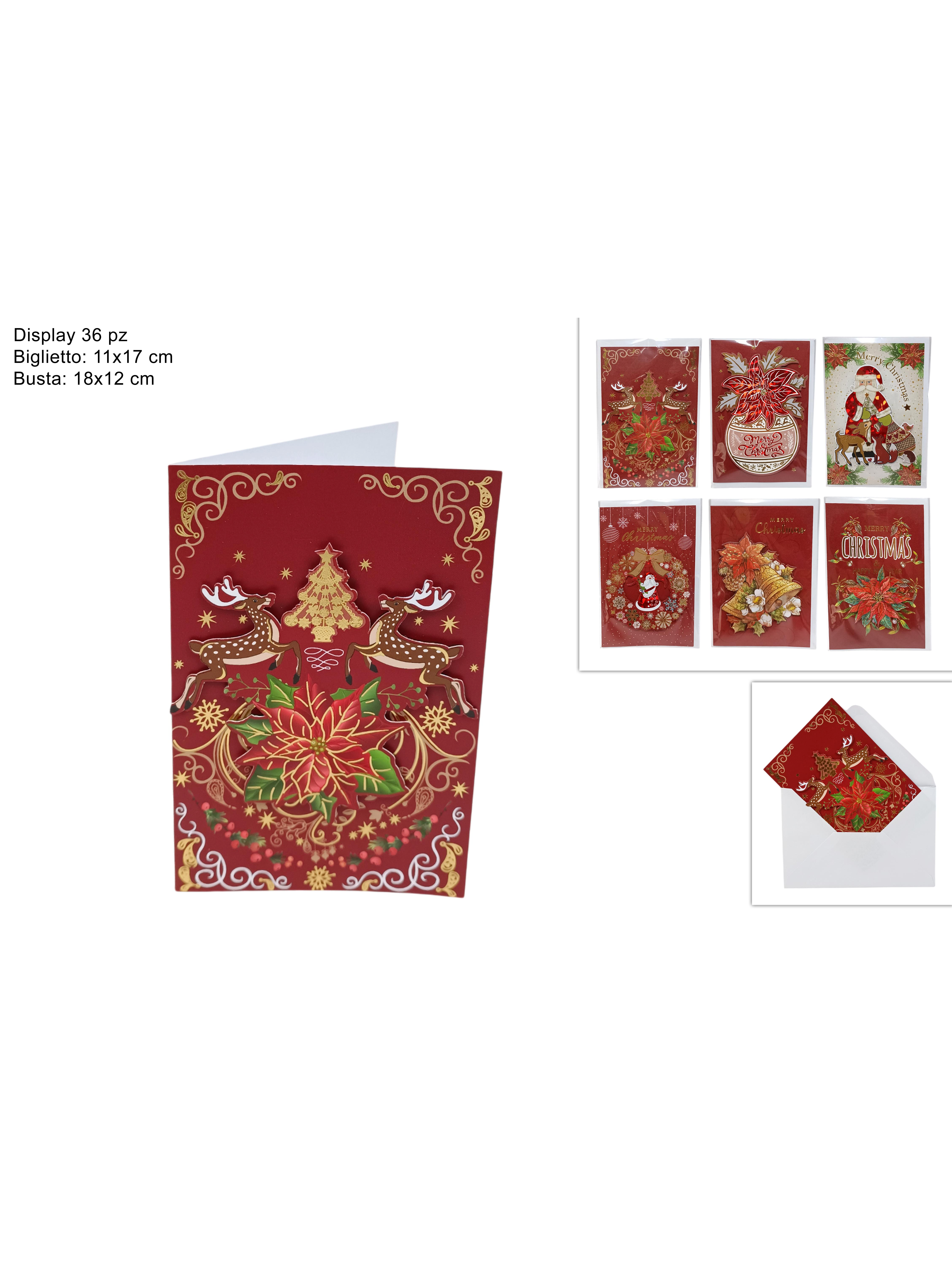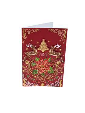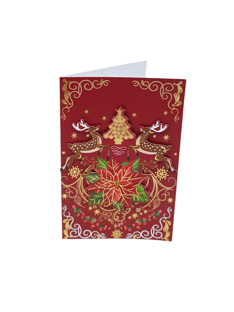 Χριστουγεννιάτικη ευχετήρια κάρτα με 3D σχέδια σε κόκκινο χρώμα 18x12cm