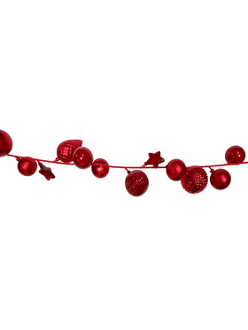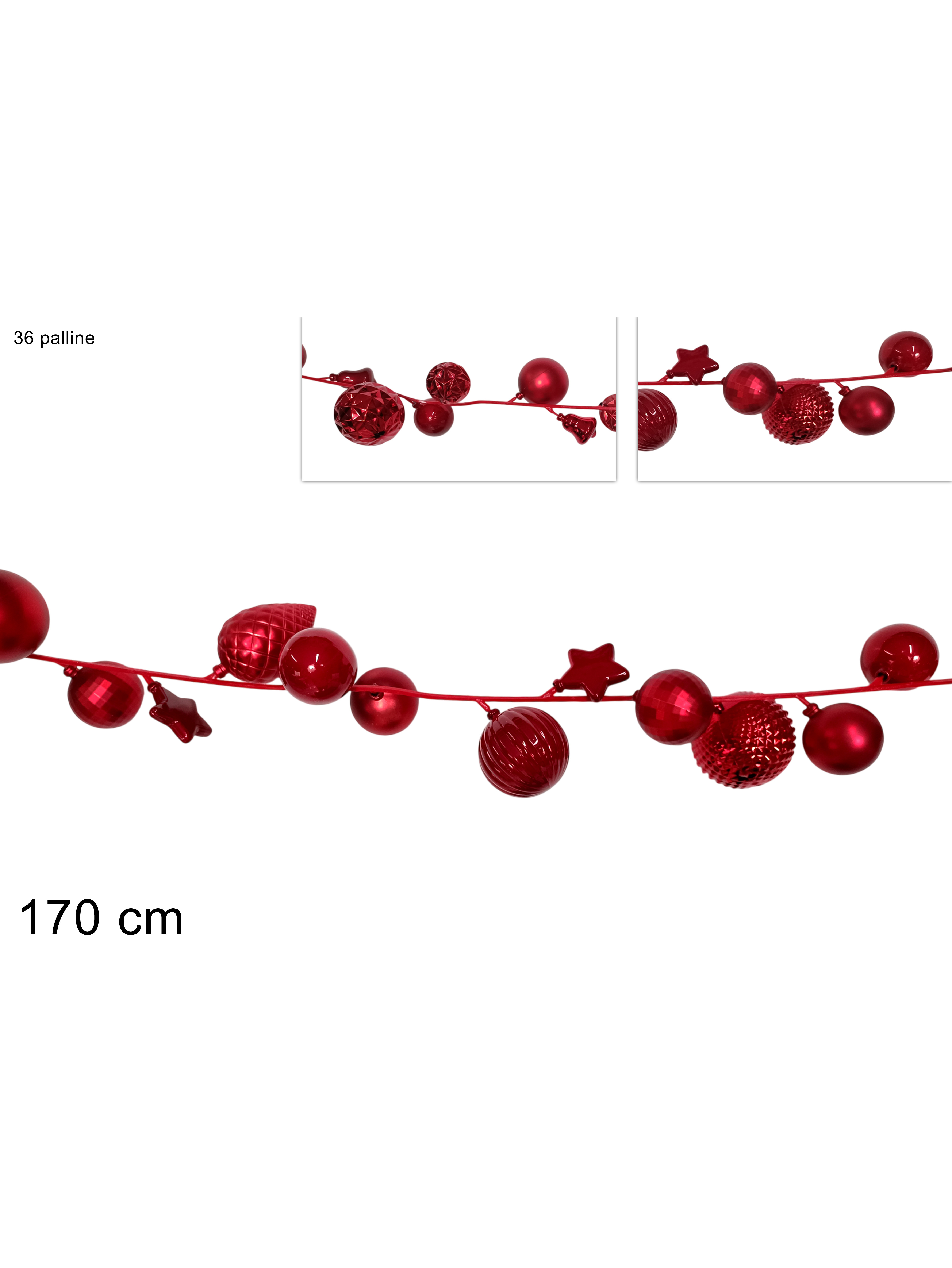 Χριστουγεννιάτικη γιρλάντα με κουκουνάρια, μπάλες και αστέρια σε κόκκινο χρώμα 170cm