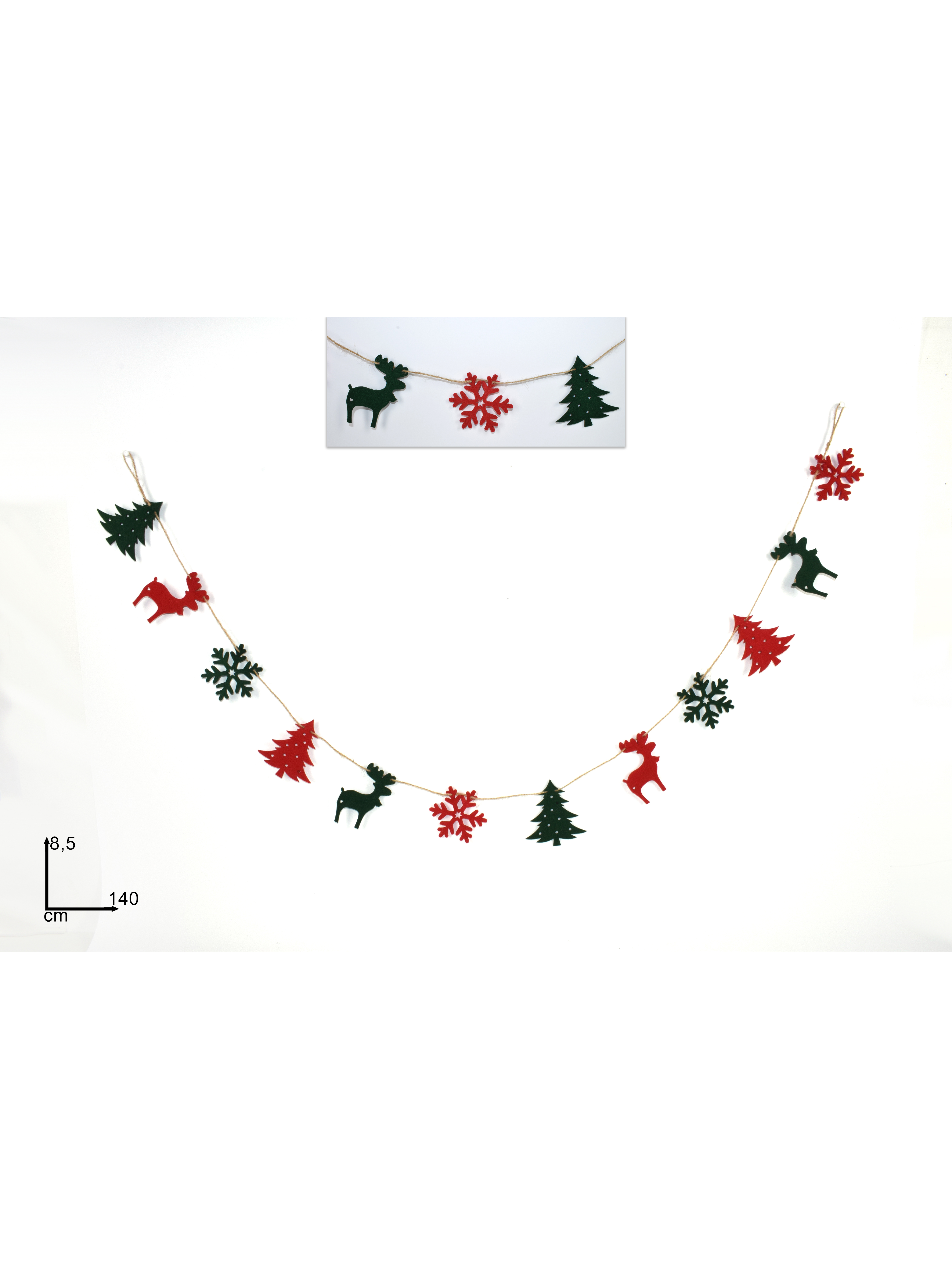 Χριστουγεννιάτικη γιρλάντα τσόχινη με ταράνδους και δεντράκια 8.5x140cm