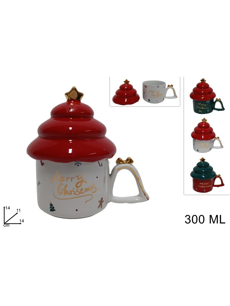 Χριστουγεννιάτικη κεραμική κούπα με καπάκι σε κόκκινο χρώμα 300ml