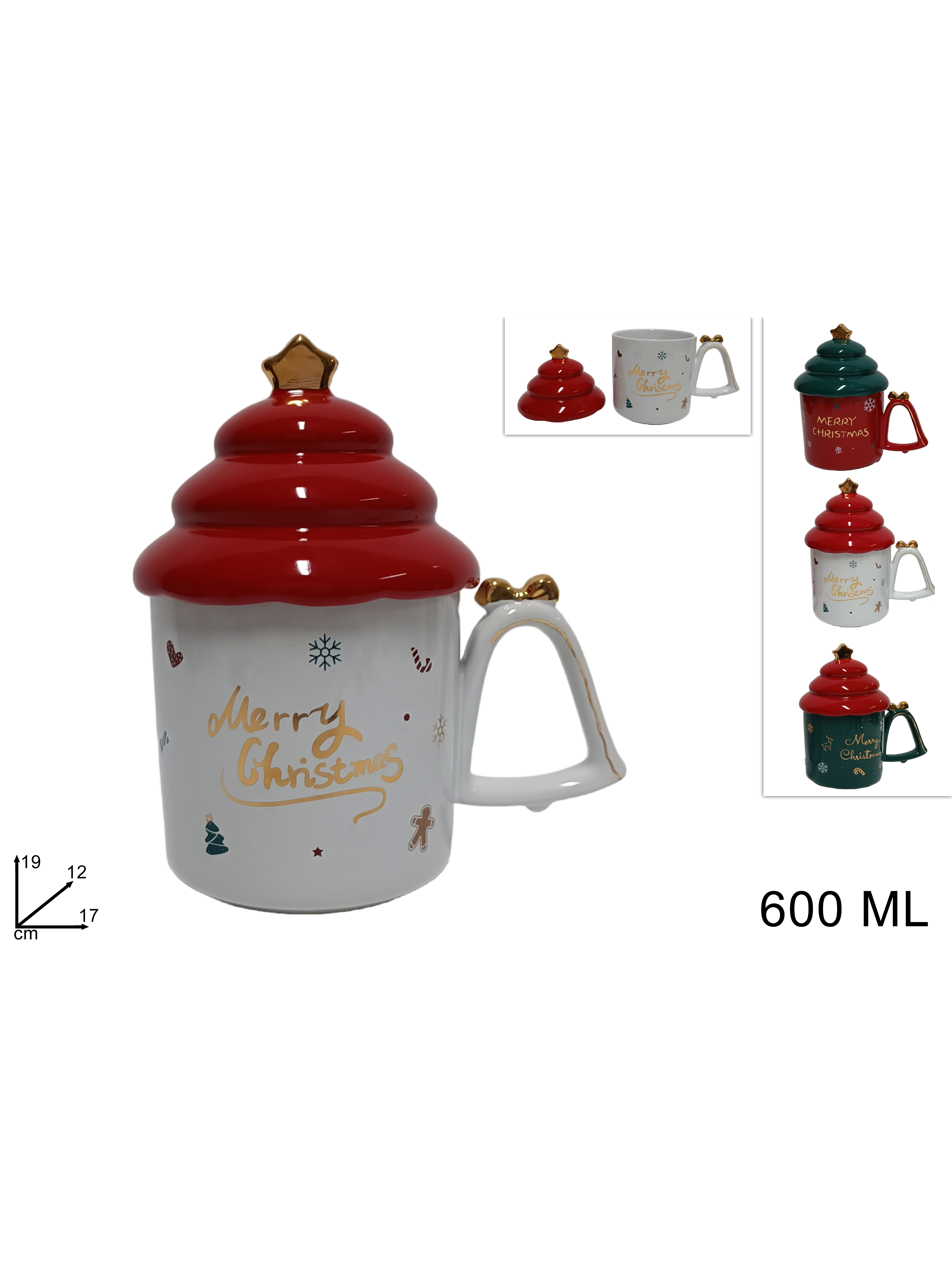 Χριστουγεννιάτικη κεραμική κούπα με καπάκι σε κόκκινο χρώμα 600ml