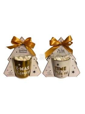 Χριστουγεννιάτικη κούπα σε συκευασία δώρου σε λευκό/χρυσό χρώμα με hot choco mix & marshmallows