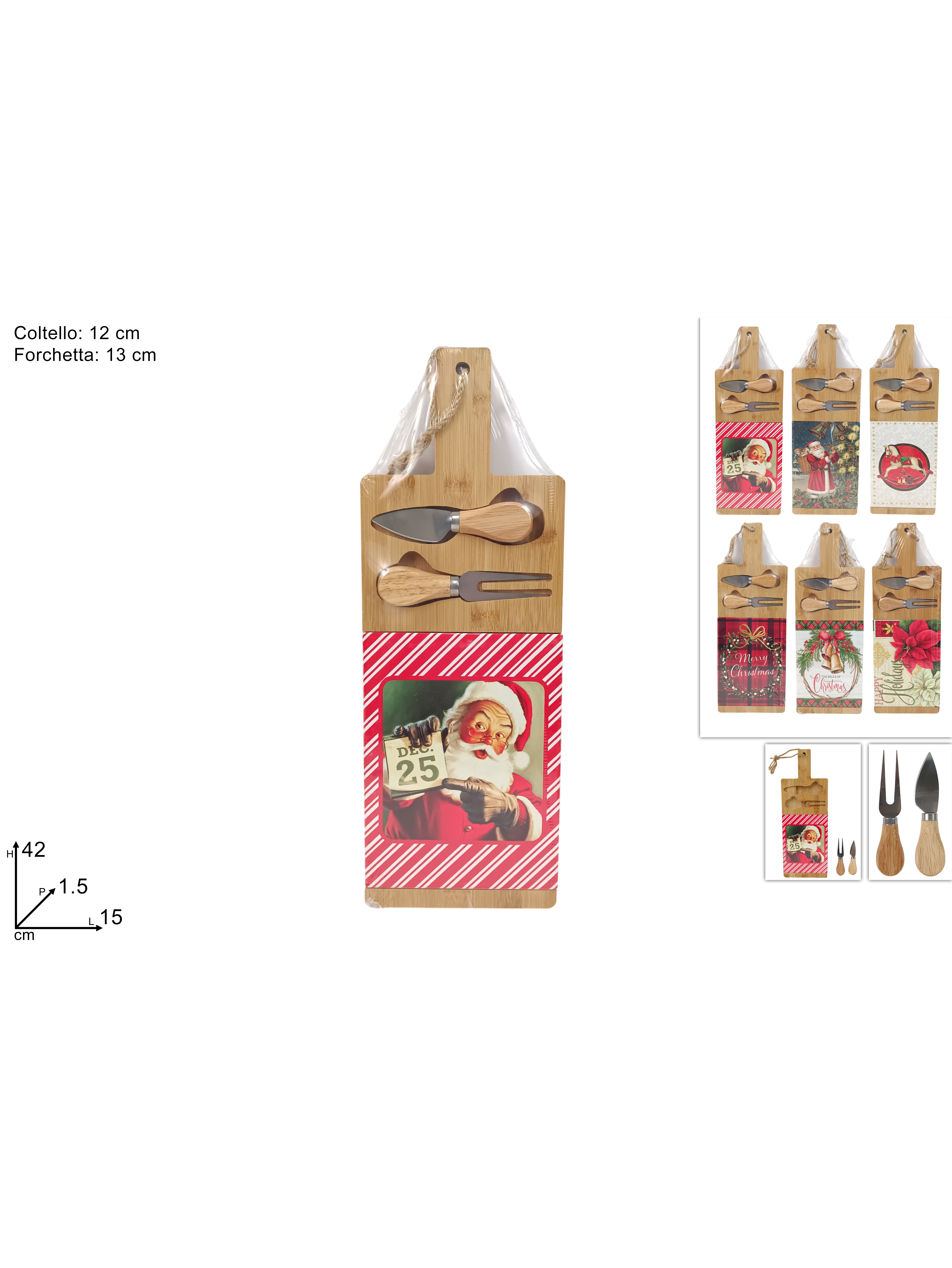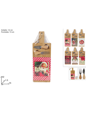 Χριστουγεννιάτικη ξύλινη επιφάνεια κοπής σετ με 2 εργαλεία κουζίνας σε κόκκινο χρώμα 42x1.5x15cm