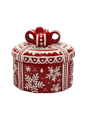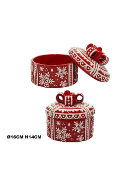 Χριστουγεννιάτικη μπισκοτιέρα στρόγγυλη 16x14cm σε κόκκινο με λευκό χρώμα