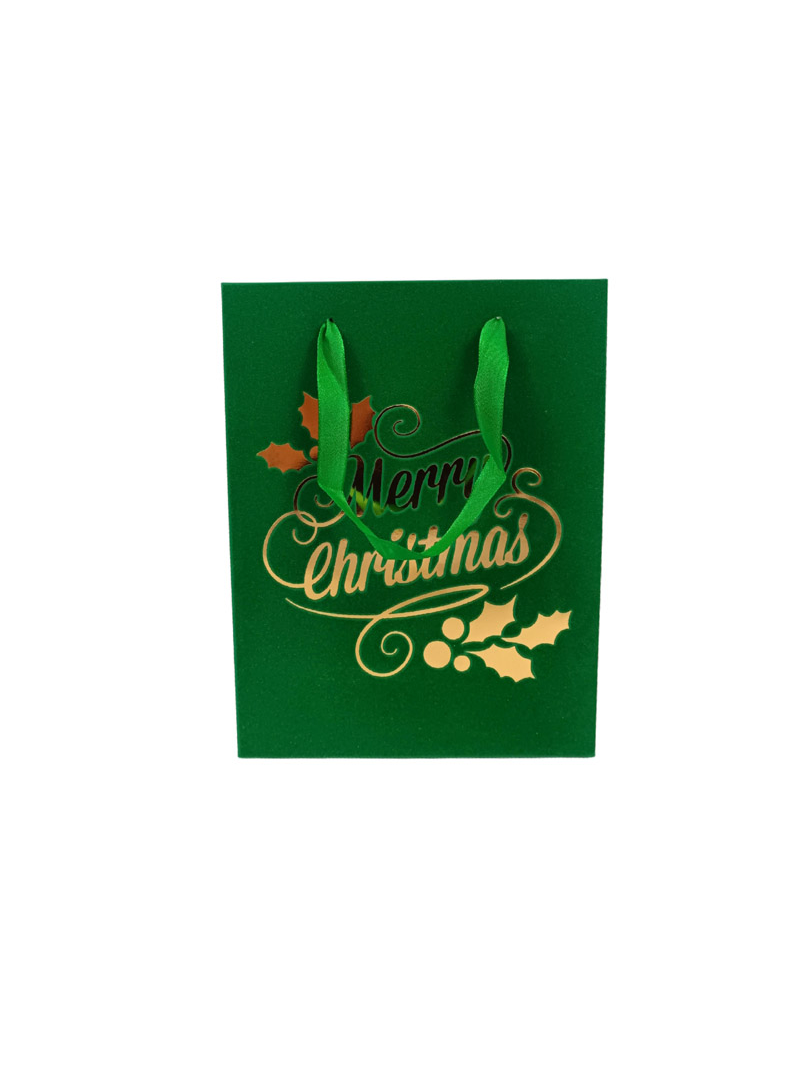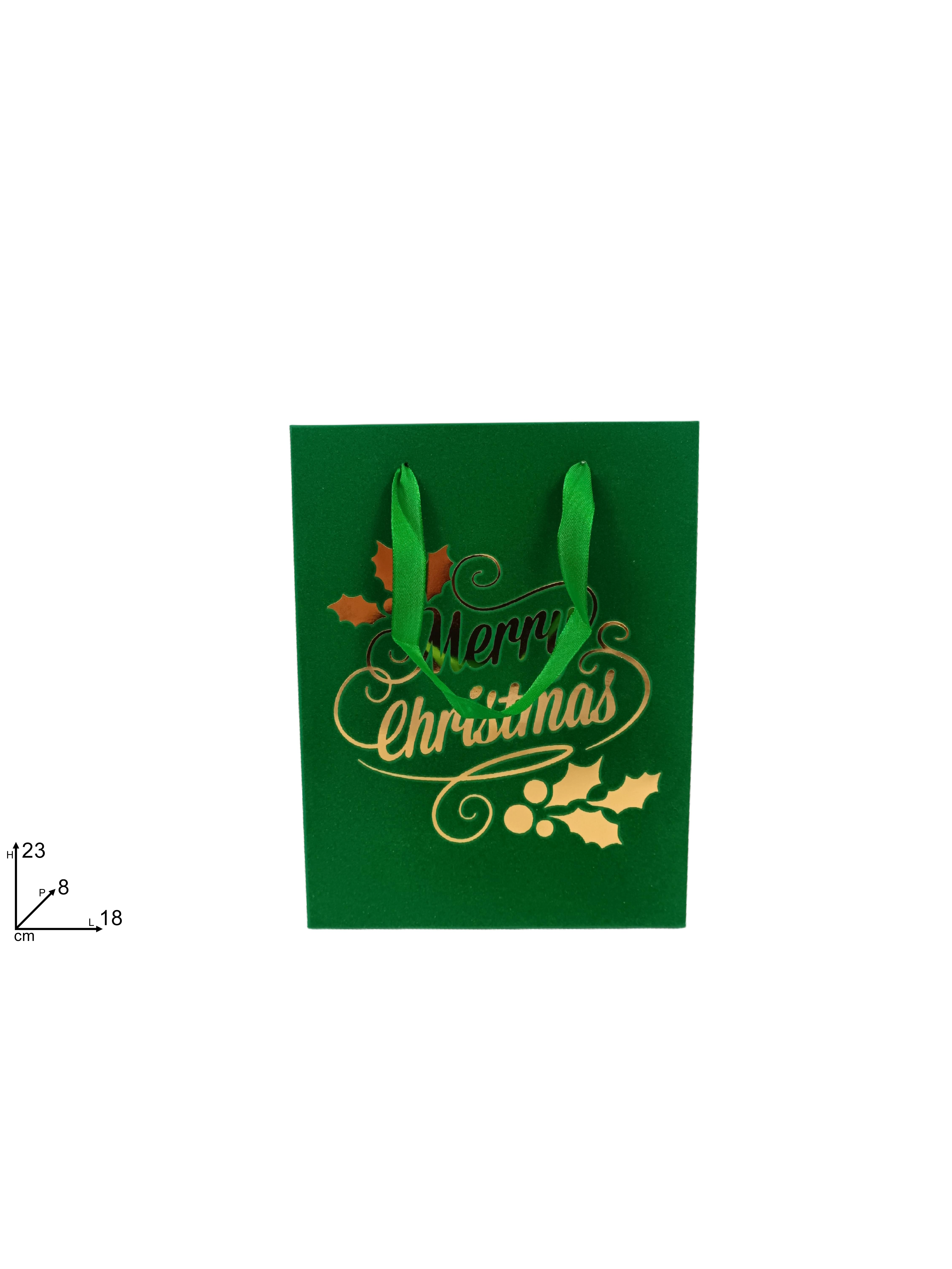 Χριστουγεννιάτικη σακούλα δώρου με χρυσαφί διακόσμηση με διαστάσεις 18x8x23cm σε βελουτέ πράσινο χρώμα