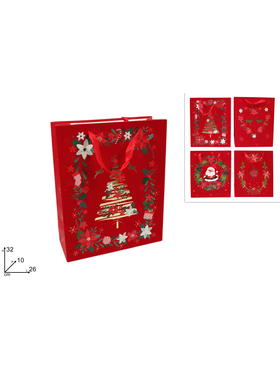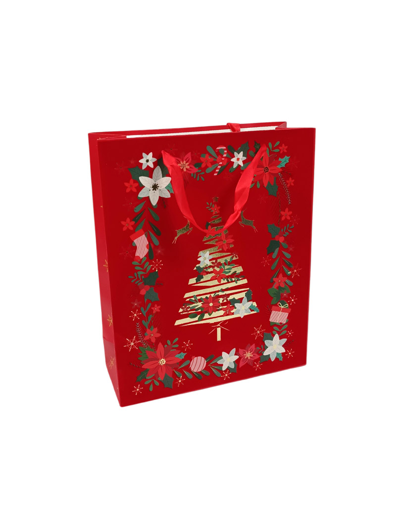 Χριστουγεννιάτικη σακούλα δώρου με χρυσαφί διακόσμηση με διαστάσεις 32x26x10cm σε βελουτέ κόκκινο χρώμα