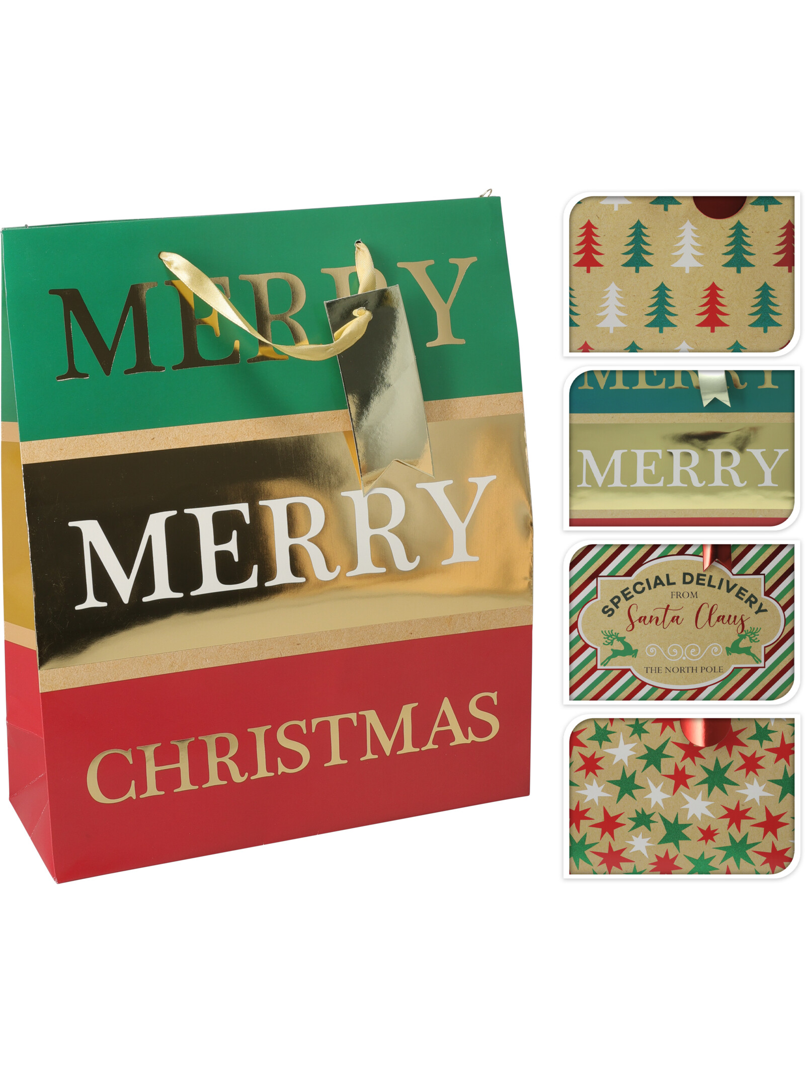 Χριστουγεννιάτικη σακούλα δώρου σε μεγάλο μέγεθος σε 4 σχέδια