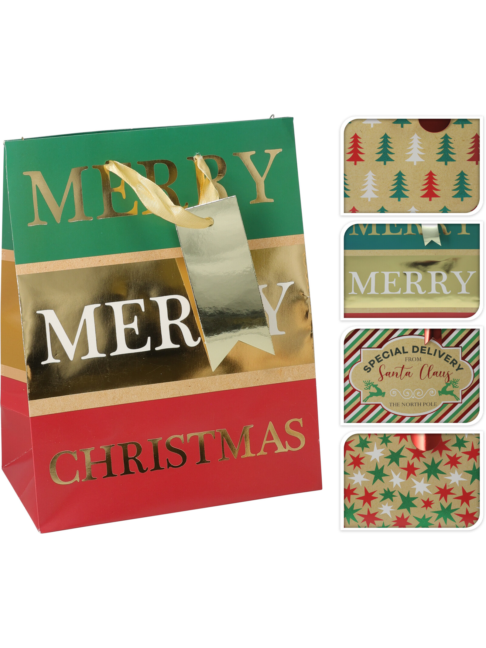 Χριστουγεννιάτικη σακούλα δώρου σε μεσαίο μέγεθος σε 4 σχέδια