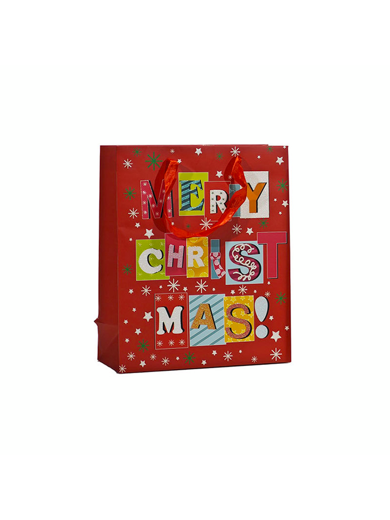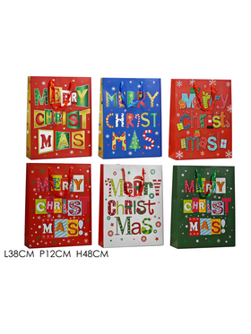 Χριστουγεννιάτικη σακούλα δώρου χάρτινη σε διάφορα χρώματα και σχέδια 38x12x48cm