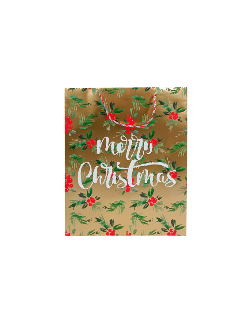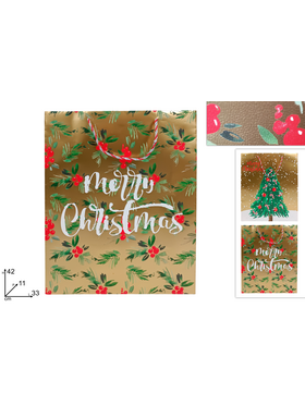 Χριστουγεννιάτικη σακούλα σε χρυσό χρώμα με σχέδια 42x11x33cm