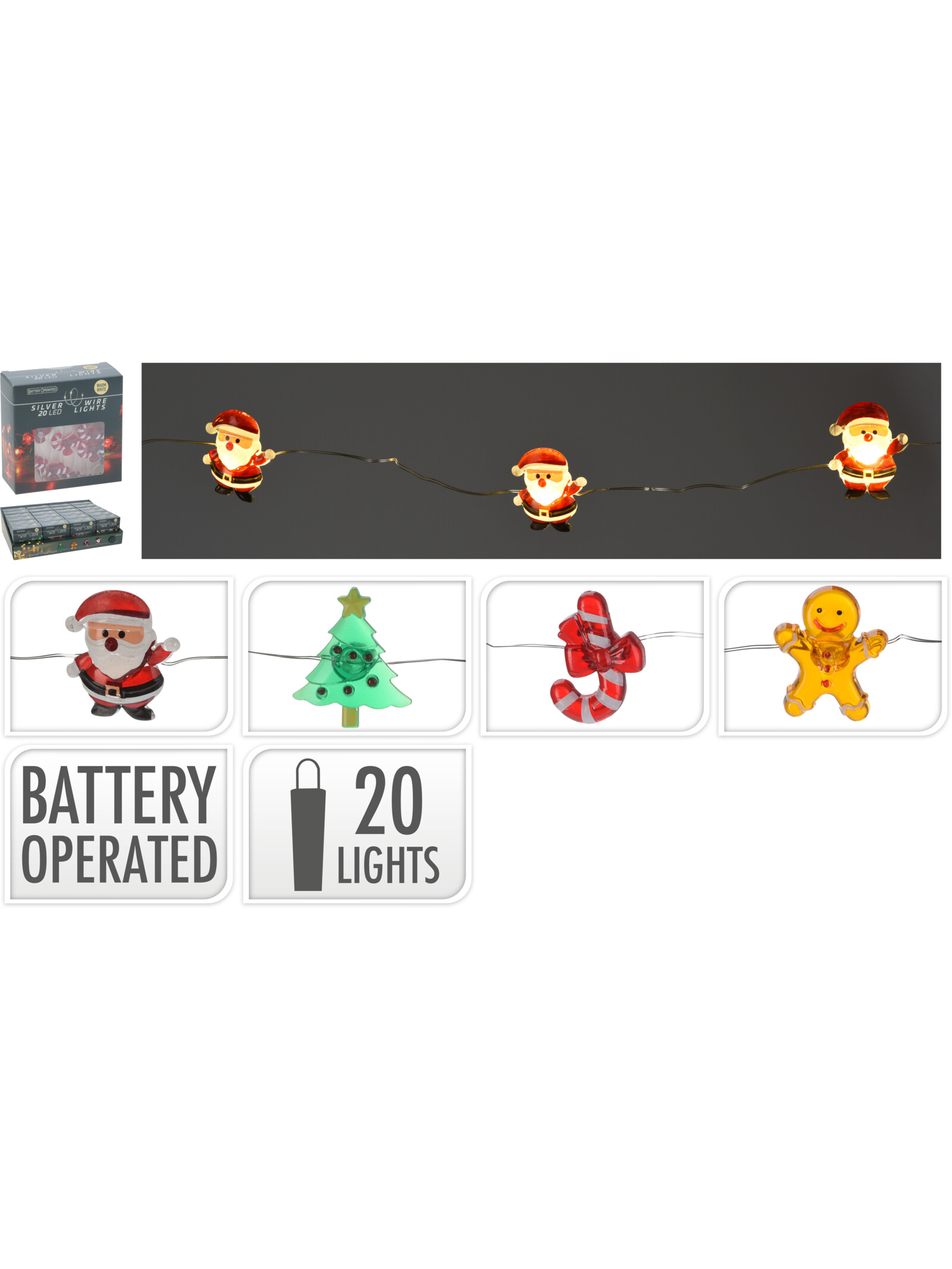 Χριστουγεννιάτικη σειρά με 20 λαμπάκια led σε διάφορα σχέδια με ασημί καλώδιο με μπαταρίες
