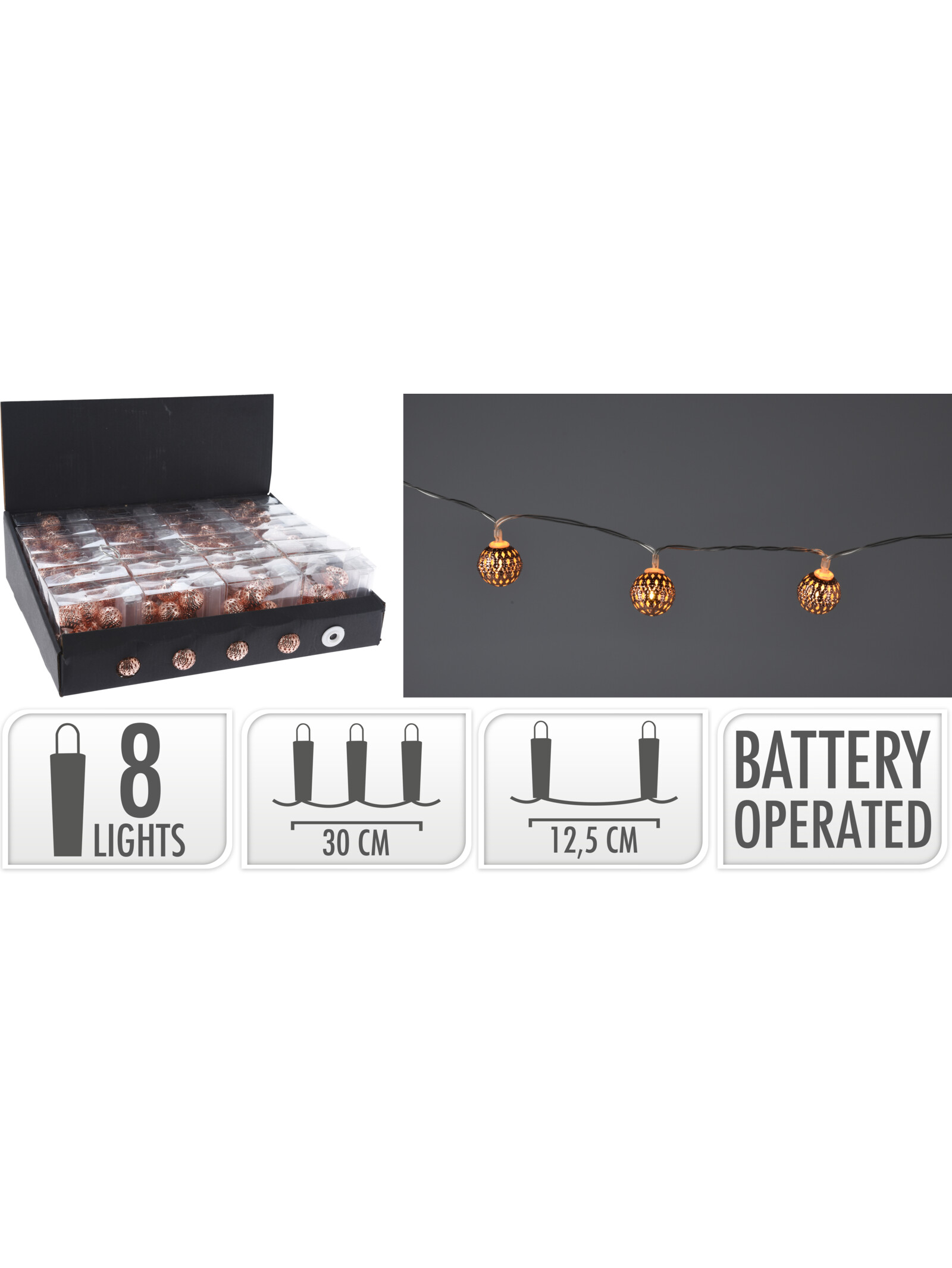 Χριστουγεννιάτικη σειρά με 8 λαμπάκια led με μεταλικό διάκοσμο σε χρυσαφί χρώμα με μπαταρίες