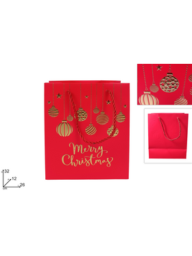 Χριστουγεννιάτικη τσάντα δώρου με διαστάσεις 26x32x12cm σε κόκκινο και χρυσό χρώμα